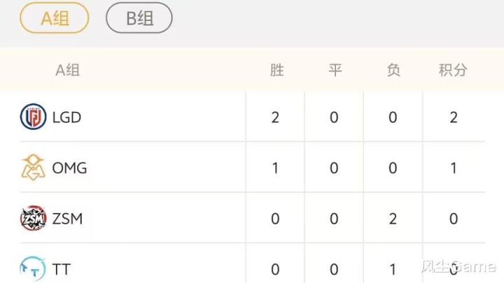 UP、TT还有两支主播队,目前都没有拿到过首胜,1分在组内已经是优势了,城墙和果子哥队,一场没赢是真出人意料,参加第一阶段的队伍,都是LPL涅槃队,部分队伍,甚至没有全上一队选手,结果两支主播队一场没赢,果子哥队累计战绩0-4,城墙队靠对手弃权,赢了LGD一小局。