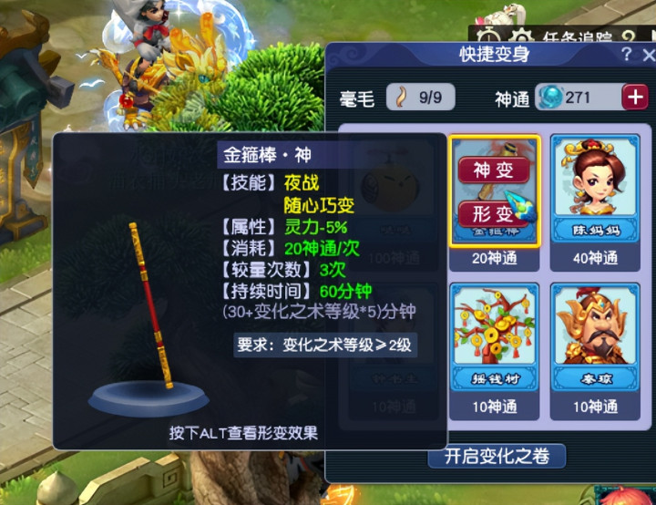第二个有意思的是,七十二变的任务,只要开过哒哒,后续的可以直接用梦幻币解锁。