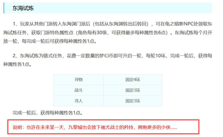 第一个是东海渊通过转入的方式,差的属性点,现在可以通过特殊任务补上了。