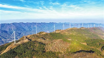 11月30日,瑞昌市洪下乡蜈蚣山风电场,一台台发电机组矗立在群山之上,壮美如画。近年来,瑞昌市坚持绿色发展理念,利用高山风力资源优势,大力发展绿色清洁能源,促进节能降耗、低碳减排,实现经济效益与生态保护双赢。