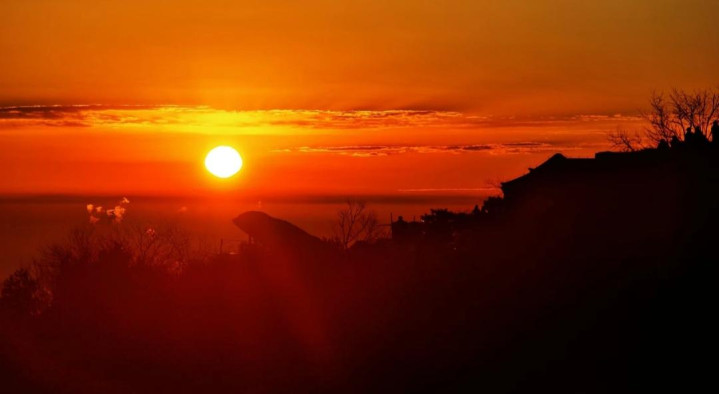 正当云海翻腾至酣畅处,东方天际悄然裂开一道金痕。初阳如熔炉倾泻,将云浪淬炼成流动的金箔。霎时间,雾凇缀枝如琉璃生辉,山风裹挟暖意拂面,天地间唯余光与云的共舞。此景恰应了杜甫笔下“荡胸生层云,决眦入归鸟”的浩渺意境。