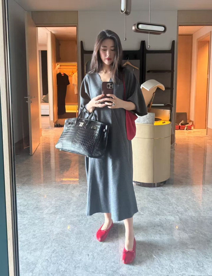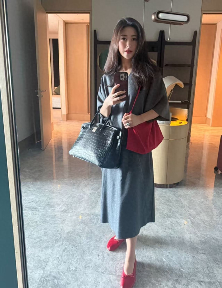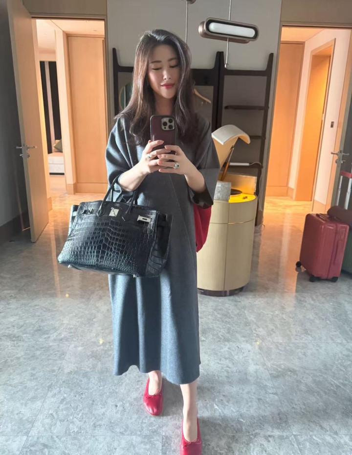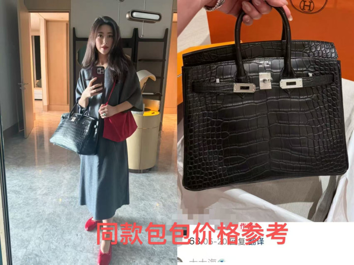 照片中的朱珠穿着灰色裙子,头发随意披散着,拿着手机对镜拍摄,手上拎着的是爱马仕经典鳄鱼皮包包,如今二手市场的行情都价值60万,何况她本人肯定不会买二手,就算是一比一配货,为了拿到这个包包,实际付出的也远超六十万。
