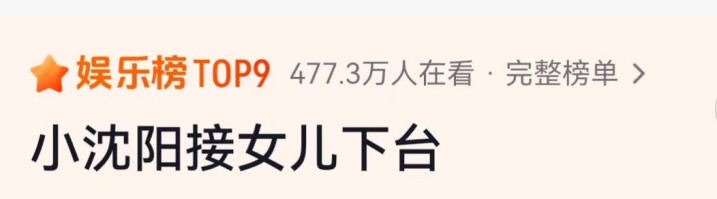 上一次小沈阳这么紧张,可能还是那一年的春晚。女儿一曲唱毕,作为父亲的小沈阳逆着人群,在舞台的边上看着自己的女儿,孩子一路小跑的奔向自己的父亲,小沈阳一把拽过孩子,一起走下舞台,消失在观众群中。小沈阳接女儿下台,这已经成了一个热搜词条,登上了热榜。
