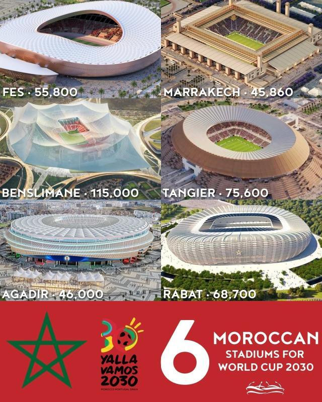 为备战2025年非洲杯和2030年世界杯,摩洛哥在体育基础设施上投资了至少20亿欧元。其中包括对拉巴特和丹吉尔体育场的翻新工程,以及计划于2028年在卡萨布兰卡附近的本斯利曼建造一座可容纳11.5万人的体育场,耗资约5亿欧元,这将是全球最大体育场之一。摩洛哥还在赛事相关基础设施上投入巨资:建设高速公路,扩展高铁网络,以及将全国机场容量翻倍。