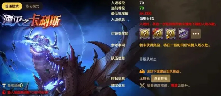 进场抗魔值门槛为54000点,每周一刷新次数,和“雷龙”共享奖励!