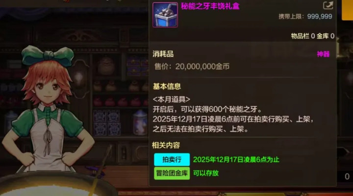 本次新加入了“秘能之牙礼盒”,打开可以获得600个秘能之牙。