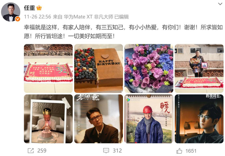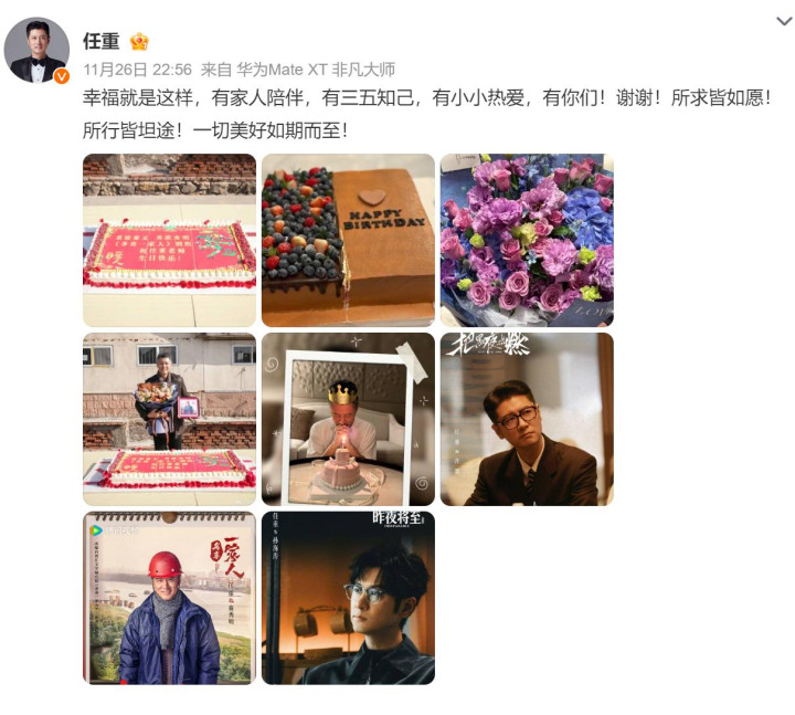 就像任重的配文里写的那样,幸福就是有家人陪伴、有三五知己,才是最长久的浪漫。